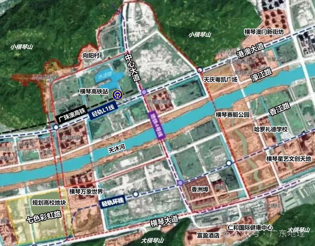 横琴高铁坐选址见下图,为地下3层超等枢纽,预留澳门轻轨延长前提和“一地两检”检验空间。